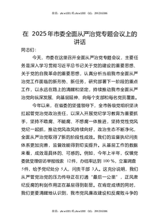 在2025年市委全面从严治党专题会议上的讲话.docx