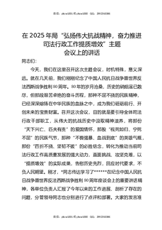 在2025年局“弘扬伟大抗战精神,奋力推进司法行政工作提质增效”主题会议上的讲话.docx
