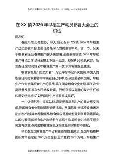在XX镇2026年早稻生产动员部署大会上的讲话.docx