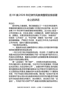 在XX镇2026年纪律作风教育整顿安排部署会上的讲话.docx