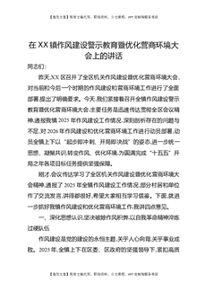 在XX镇作风建设警示教育暨优化营商环境大会上的讲话.docx