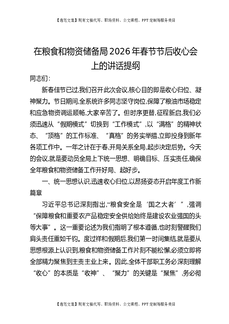 在粮食和物资储备局2026年春节节后收心会上的讲话提纲.docx