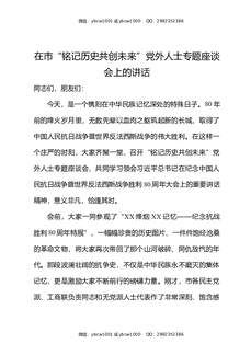 在市“铭记历史共创未来”党外人士专题座谈会上的讲话.docx