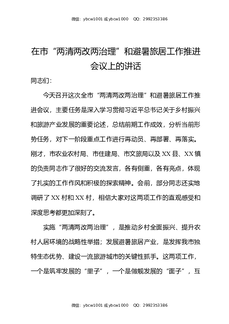 在市两清两改两治理和避暑旅居工作推进会议上的讲话.docx