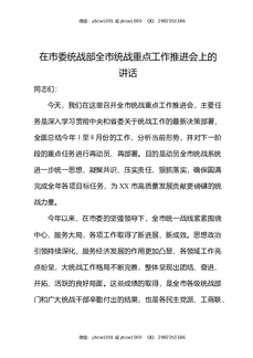 在市委统战部全市统战重点工作推进会上的讲话.docx