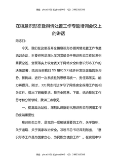 在镇意识形态暨舆情处置工作专题培训会议上的讲话.docx