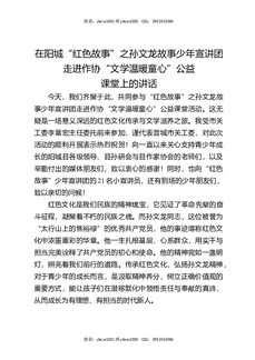 在阳城“红色故事”之孙文龙故事少年宣讲团走进作协“文学温暖童心”公益课堂上的讲话.docx