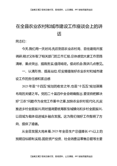 在全县农业农村和城市建设工作座谈会上的讲话.docx