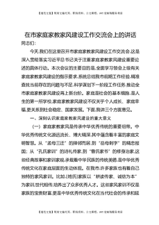 在市家庭家教家风建设工作交流会上的讲话.docx