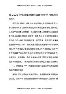 镇2026年党风廉政暨作风建设大会上的讲话.docx