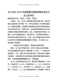 在上安村2025年度暨第五届教育基金奖学大会上的讲话.docx