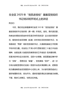在全区2025年“党员进党校”暨基层党组织书记培训班开班式上的讲话.docx