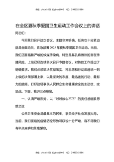 在全区夏秋季爱国卫生运动工作会议上的讲话.docx