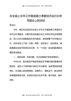 在全县上半年工作复盘暨三季度经济运行分析专题会上的讲话.docx