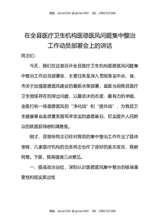 在全县医疗卫生机构医德医风问题集中整治工作动员部署会上的讲话.docx