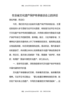 在全省文化遗产保护传承座谈会上的讲话.docx