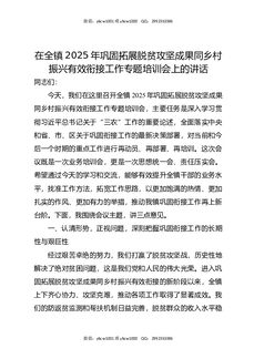 在全镇2025年巩固拓展脱贫攻坚成果同乡村振兴有效衔接工作专题培训会上的讲话.docx