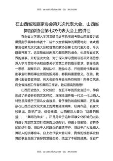 在山西省戏剧家协会第九次代表大会、山西省舞蹈家协会第七次代表大会上的讲话.docx