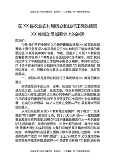 在XX县农业农村局树立和践行正确Z绩观XX教育动员部署会上的讲话.docx