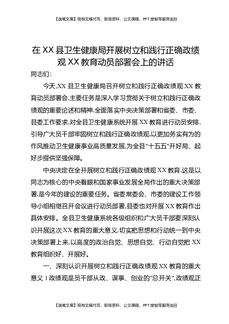 在XX县卫生健康局开展树立和践行正确Z绩观XX教育动员部署会上的讲话.docx