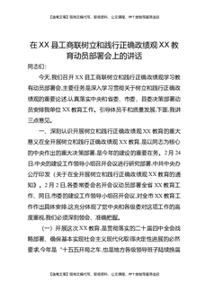 在XX县工商联树立和践行正确Z绩观XX教育动员部署会上的讲话.docx