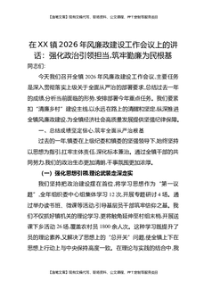 在XX镇2026年党风廉政建设工作会议上的讲话:强化政治引领担当,筑牢勤廉为民根基.docx
