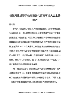 镇作风建设警示教育暨优化营商环境大会上的讲话.docx