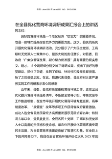 在全县优化营商环境调研成果汇报会上的讲话.docx