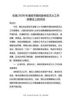 在镇2026年清明节期间森林防灭火工作部署会上的讲话.docx