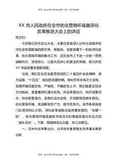 XX市人民政府在全市优化营商环境暨深化改革推进大会上的讲话.docx