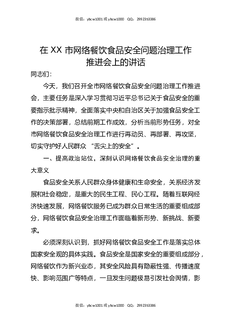 在XX市网络餐饮食品安全问题治理工作推进会上的讲话.docx