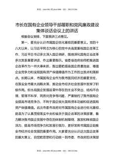 市长在国有企业领导干部履职和党风廉政建设集体谈话会议上的讲话.docx