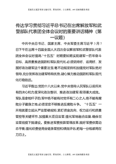传达学习贯彻总书记在出席解放军和武警部队代表团全体会议时的重要讲话精神(第一议题).docx