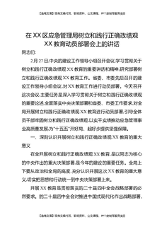 在XX区应急管理局树立和践行正确Z绩观XX教育动员部署会上的讲话.docx