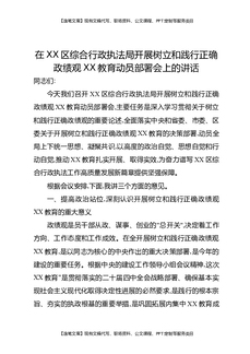 在XX区综合行政执法局开展树立和践行正确Z绩观XX教育动员部署会上的讲话.docx