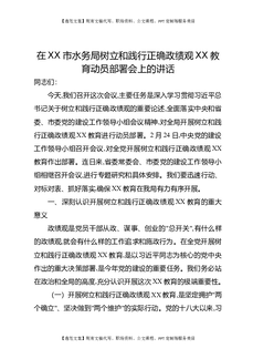 在XX市水务局树立和践行正确Z绩观XX教育动员部署会上的讲话.docx