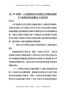 在XX市第一人民医院树立和践行正确Z绩观XX教育动员部署会上的讲话.docx