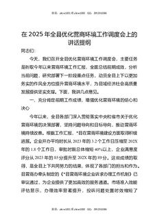 在2025年全县优化营商环境工作调度会上的讲话提纲.docx