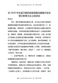 在2025年全县卫健系统医德医风暨医疗安全警示教育大会上的讲话.docx