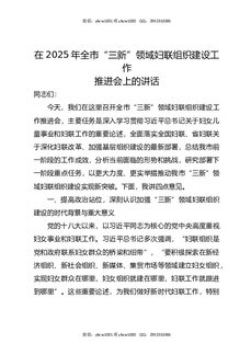在2025年全市“三新”领域妇联组织建设工作推进会上的讲话.docx