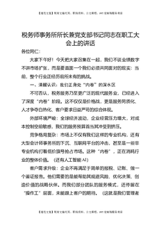 税务师事务所所长兼党支部书记同志在职工大会上的讲话.docx