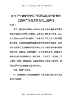 在市卫生健康系统深化医德医风建设暨推进全面从严治党工作会议上的讲话.docx