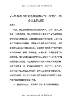 2025年全市应对连续阴雨天气三秋生产工作会议上的讲话.docx