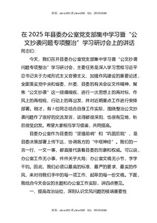 在2025年县委办公室党支部集中学习暨“公文抄袭问题专项整治”学习研讨会上的讲话.docx