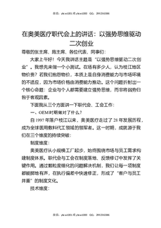 在奥美医疗职代会上的讲话:以强势思维驱动二次创业.docx