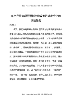 在全县重大项目谋划与建设推进调度会上的讲话提纲.docx