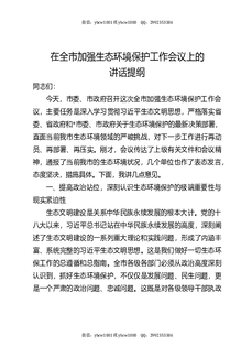 在全市加强生态环境保护工作会议上的讲话提纲.docx