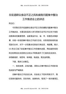 在街道群众身边不正之风和腐败问题集中整治工作推进会上的讲话.docx