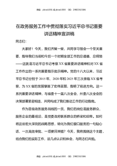 在政务服务工作中贯彻落实习近平总书记重要讲话精神宣讲稿.docx