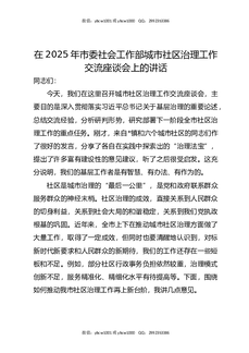 在2025年市委社会工作部城市社区治理工作交流座谈会上的讲话.docx